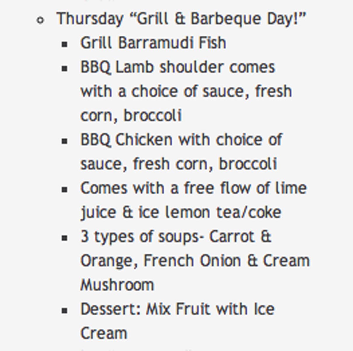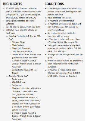 A customer who was redeeming her voucher came up to my table and clarified the deal with me. She too, wasn’t happy with the way the restaurant handled things; we were there on a Thursday (Grill & Barbeque Day).