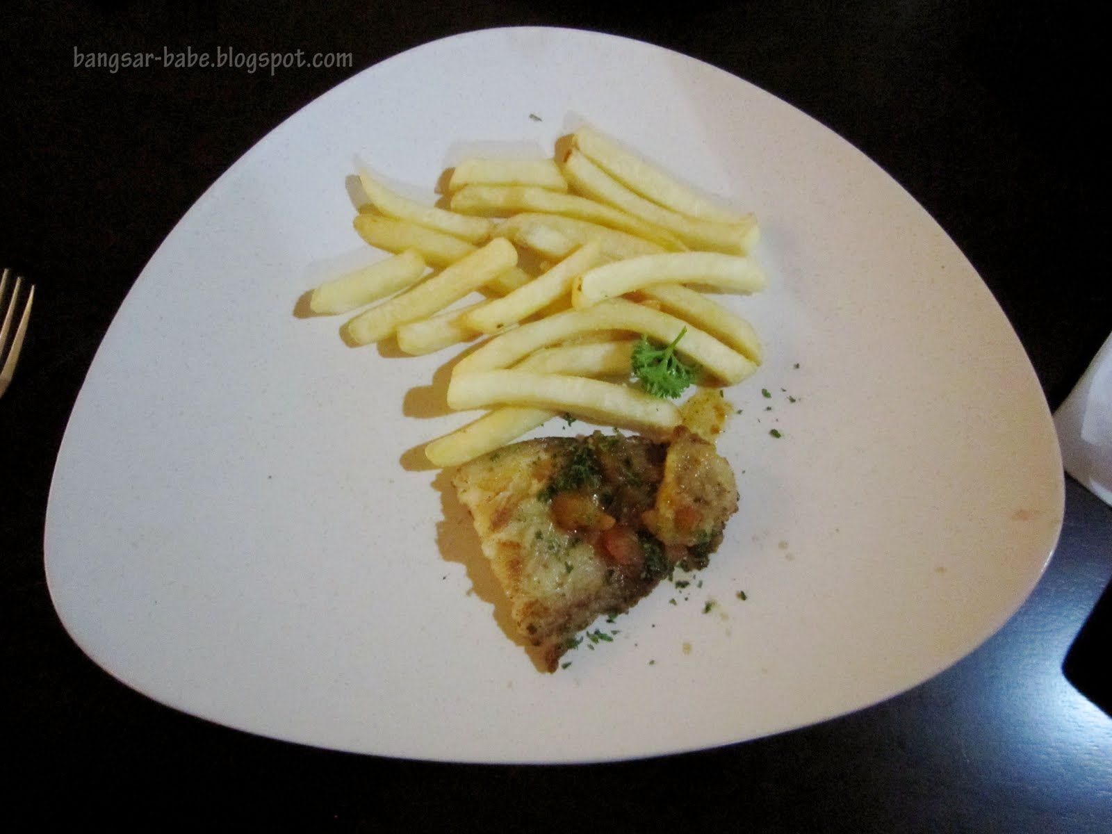 Our mains took ages to arrive. Portion was a joke, and no thought was given to the presentation at all. The deal promised diners a choice of sauce, fresh corn and broccoli. What we got was a fixed sauce and some fries. The grill barramundi fish was crisp on the outside but slimy on the inside. It was as though the fish wasn’t properly thawed.