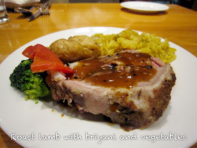 Most popular that day was the carving station – whole roast lamb with roasted vegetables and briyani rice and sauce condiments (mint sauce, black pepper sauce and dalcha). By the time I got to this station, the whole lamb was gone. But this was quickly replaced with another freshly roasted lamb. I had a large slice and it was juicy and tender with a tasty layer of fat. The meat, seasoned with herbs and spices smelt wonderful and the briyani rice was as fluffy as it should be.