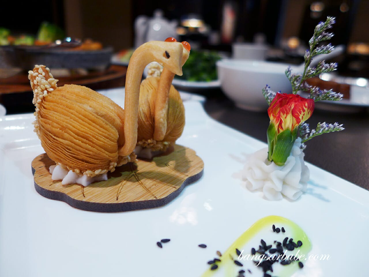 I like how Chef Fei plays with food presentation, like the pan fried goose and radish dumplings that was shaped like a swan. Also too cute to eat is the deep fried rice ball with Chinese frog jelly and coconut milk, shaped like a duck. This was a tasty treat where the centre is creamy and smooth from the jelly.