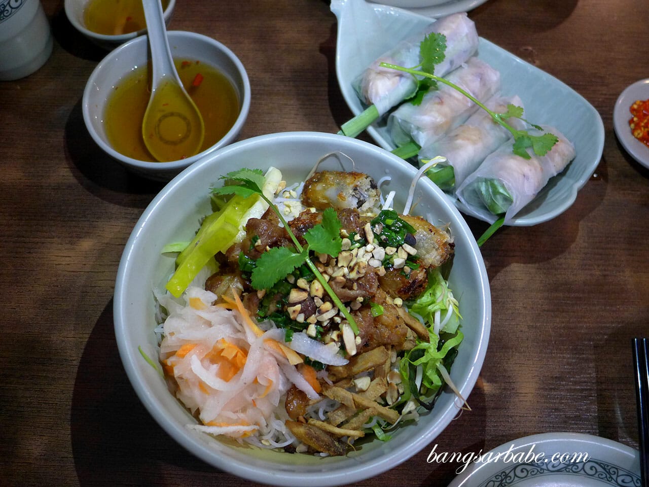 rif tried the Bun Cha, a dish of vermicelli with fresh vegetables, grilled pork and dipping sauce. This was crisp, porky and somewhat light, with the sweet, spicy and tangy sauce adding flavour to the overall dish.