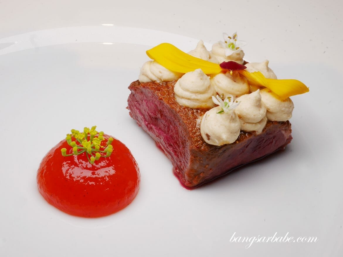FLOUR’s duck breast (Safes Mas) is beautifully executed. The cook on this is amazing – pink centre and a lovely sear on top. White meat is traditionally used but Chef Yogi replaced it with kampung duck, and in place of cream sauce is pumpkin and berries, with celeriac as the base.